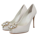 Dolce & Gabbana White Crystals Peep Toe Heel Satin Pumps