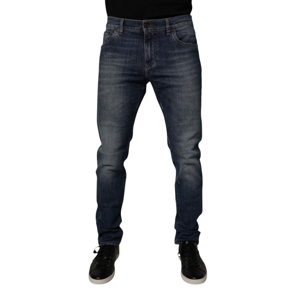 Dolce & Gabbana Dark Blue Cotton Leather Skinny Denim Jeans