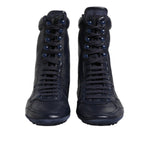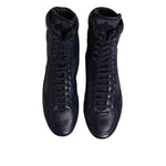 Dolce & Gabbana Dark Blue Leather KING High Top Sneakers Shoes