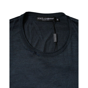 Dolce & Gabbana Dark Blue Silk Crew Neck Short Sleeve T-shirt