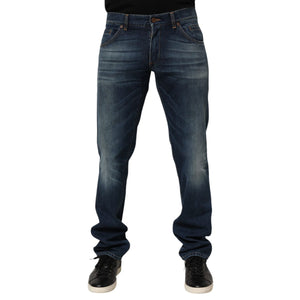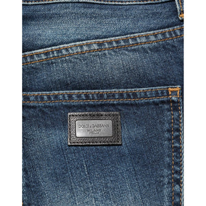 Dolce & Gabbana Dark Blue Washed Cotton Skinny Men Denim Jeans