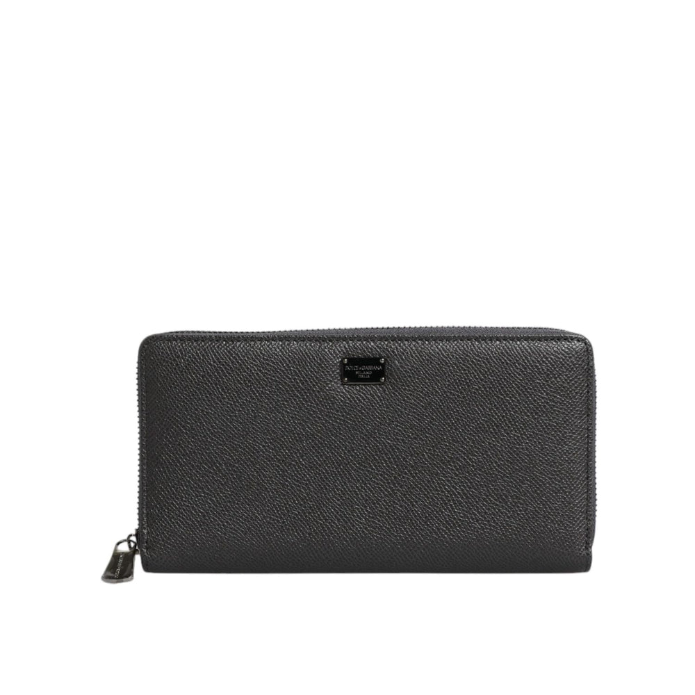 Dolce & Gabbana Dark Gray Leather DG Logo Zip Around Continental Wallet
