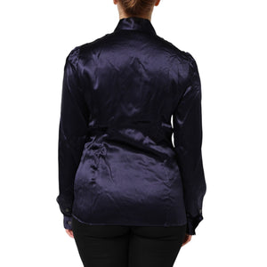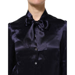 Dolce & Gabbana Dark Purple Silk Ascot Collared Blouse Top