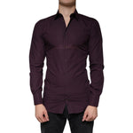 Dolce & Gabbana Dark Violet Cotton Dress GOLD Men Formal Shirt