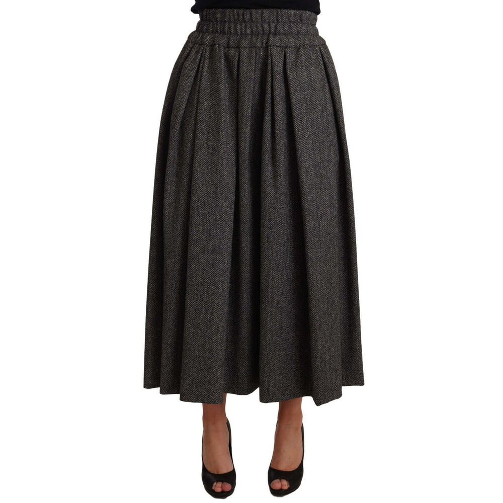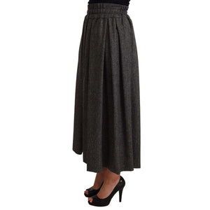 Dolce & Gabbana Gray Wool High Waist A-line PIECE Skirt