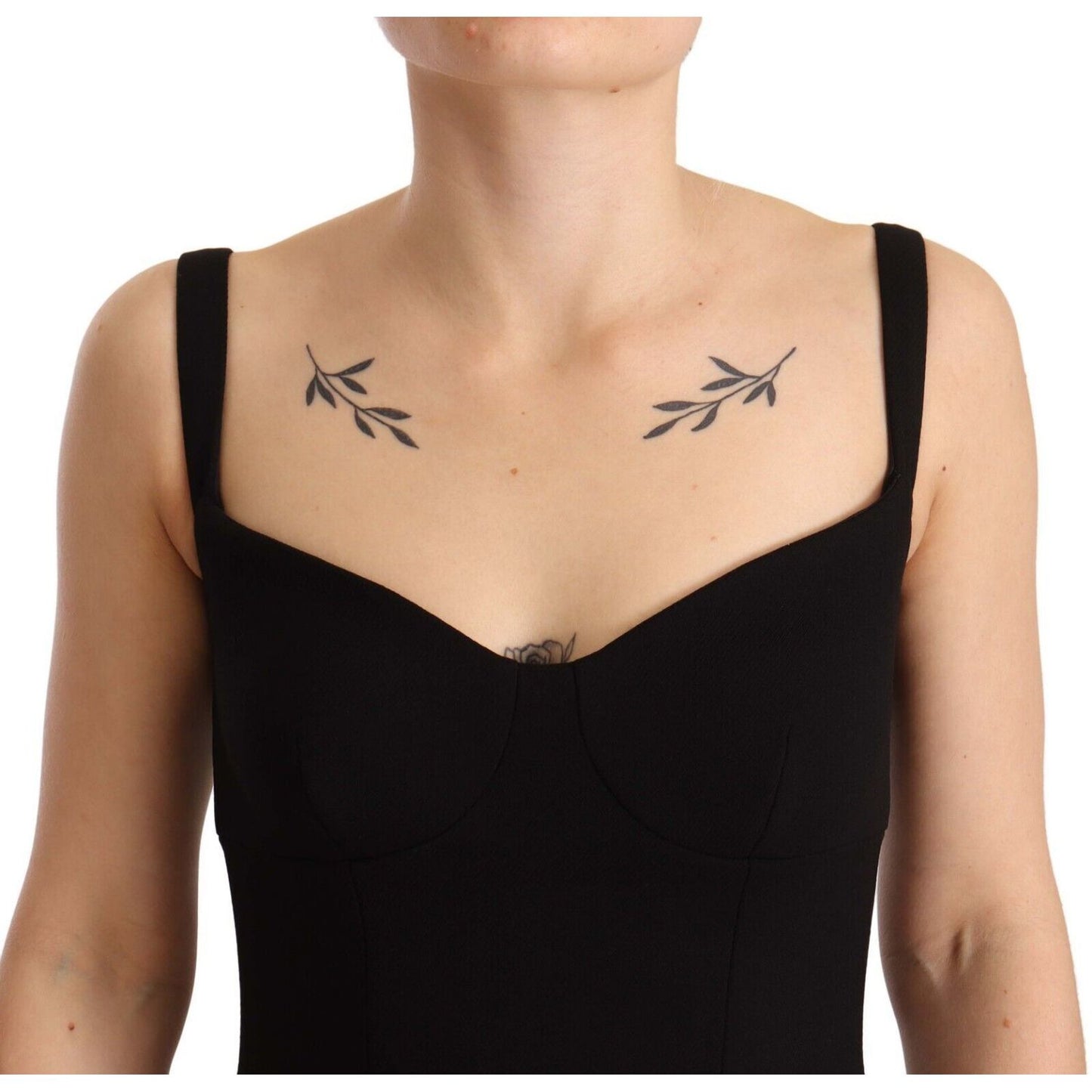 Dolce & Gabbana Black Fit Flare Wool Stretch Sheath Dress
