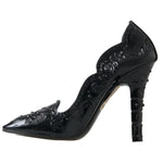 Dolce & Gabbana Black CINDERELLA Floral Crystal Heels Shoes