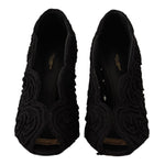 Dolce & Gabbana Black Cordonetto Ricamo Pump Open Toe Shoes