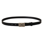 Dolce & Gabbana Black Leather Silver DG Logo Buckle Belt