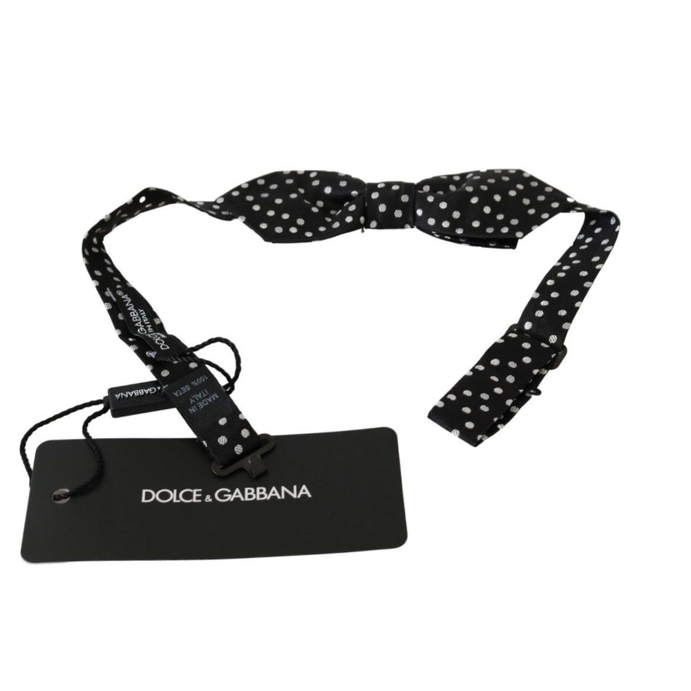 Dolce & Gabbana Black Polka Dots Mens Necktie Papillon 100% Silk Bow Tie