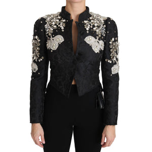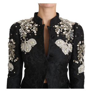 Dolce & Gabbana Black Jacquard Crystal Floral Jacket