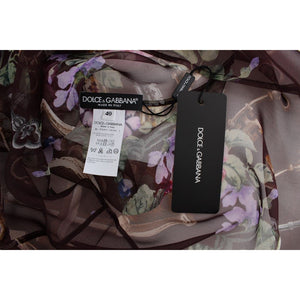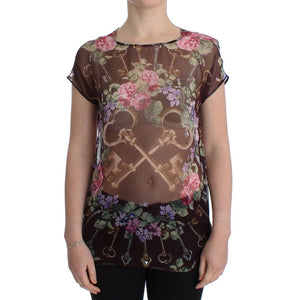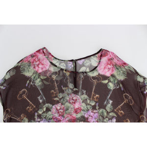 Dolce & Gabbana Black Key Floral Print Silk Blouse T-shirt