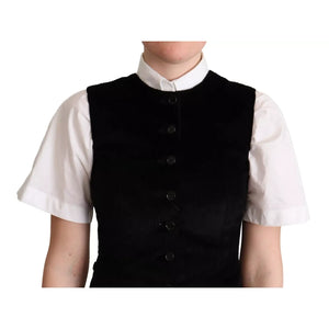 Dolce & Gabbana Black Brown Leopard Print Waistcoat Vest