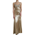 Dolce & Gabbana Metallic Gold Crystal Embellished Gown Dress