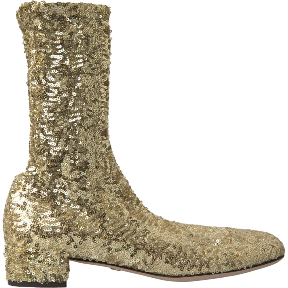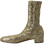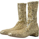 Dolce & Gabbana Gold Sequined Short Boots Stretch Shoes