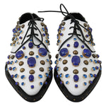 Dolce & Gabbana White Leather Crystals Dress Broque Shoes