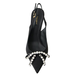 Dolce & Gabbana Black Crystal Embellished Slingback Heel Shoes