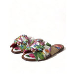 Dolce & Gabbana Multicolor Floral Flats Crystal Sandals Shoes