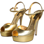Dolce & Gabbana Gold Bette Leather Heels Sandals Shoes