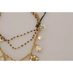 Dolce & Gabbana Gold Brass Crystal Floral Statement Charms Necklace