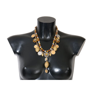 Dolce & Gabbana Gold Brass Crystal Logo Pineapple Statement Necklace