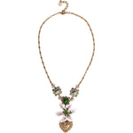 Gorgeous brand new, 100% Authentic Dolce & Gabbana gold-tone floral necklace features a mix of stone embellishments, a lobster clasp closure, a gold-tone chain and branded sacred heart pendant.