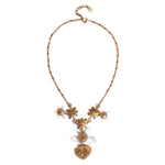 Gorgeous brand new, 100% Authentic Dolce & Gabbana gold-tone floral necklace features a mix of stone embellishments, a lobster clasp closure, a gold-tone chain and branded sacred heart pendant.
