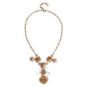 Dolce & Gabbana Gold Brass Lily Crystal Sacred Heart Pendant Necklace