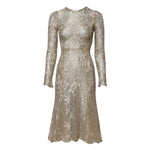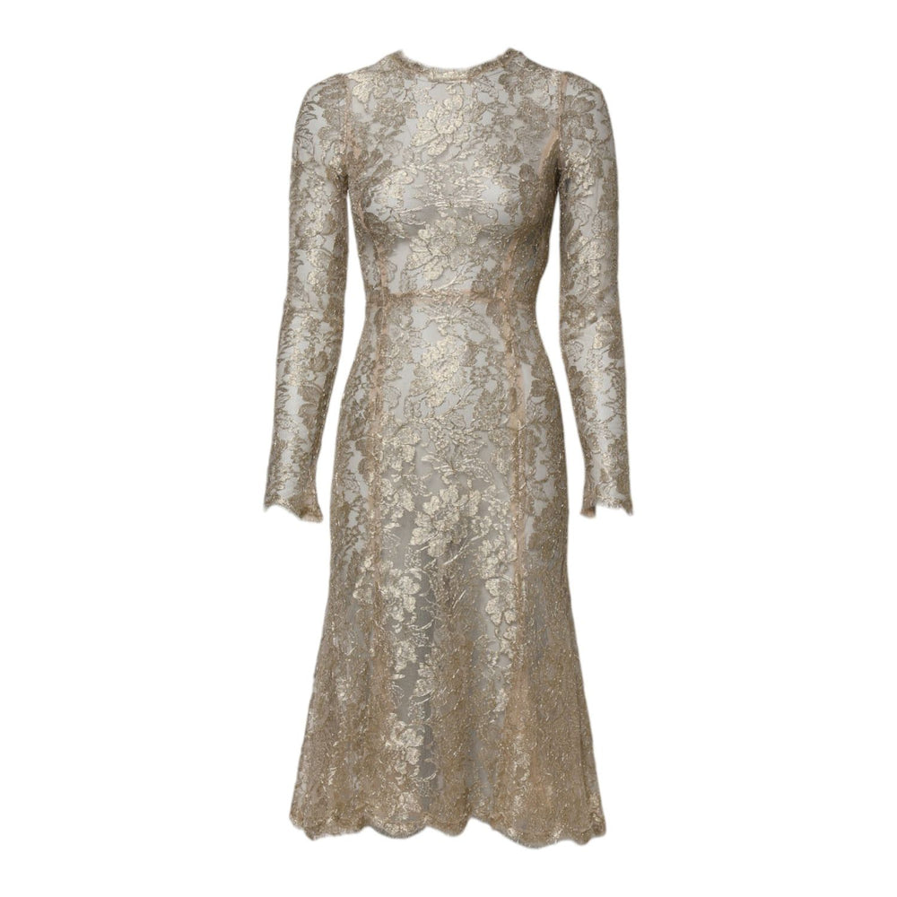 Dolce & Gabbana Gold Floral Lace Long Sleeves Fit & Flare Dress