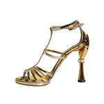 Dolce & Gabbana Gold Leather Baroque Heels Sandals Shoes