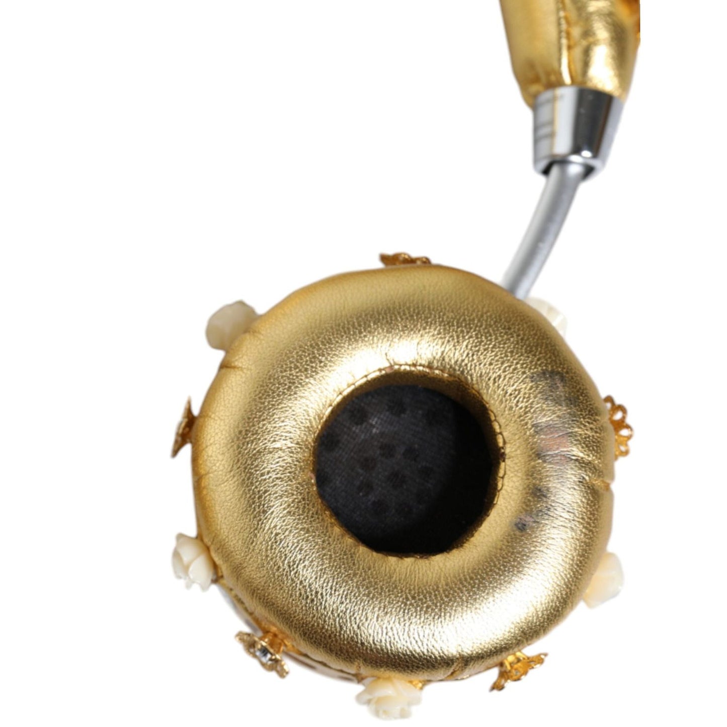 Dolce & Gabbana Gold Leather Floral Crystal Angel Headphones
