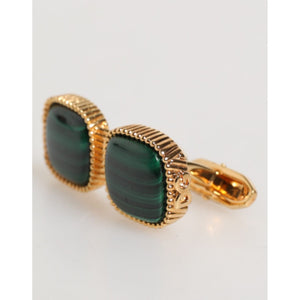 Dolce & Gabbana Gold Malachite Green Stone Square Men's Accessory Cufflink
