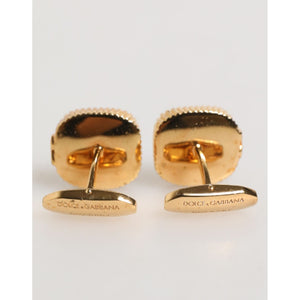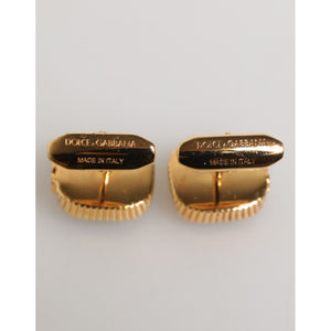 Gorgeous brand new, 100% Authentic Dolce & Gabbana gold ton cufflinks features a striking square design with polished gold-tone metal and rich malachite green stone inlays, framed by a detailed beaded border and ribbed accents. These elegant cufflinks add a refined pop of color and luxury to any formal outfit.