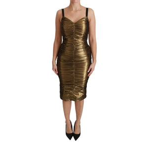 Dolce & Gabbana Gold Metallic Stretch Bodycon Ruched Dress