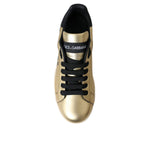 Dolce & Gabbana Gold Portofino Calf Leather Sneakers Women Shoes