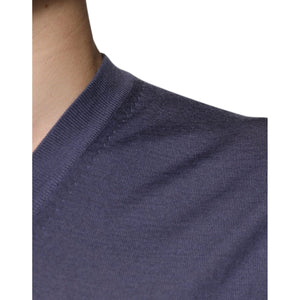 Dolce & Gabbana Gray Cashmere V-neck Men Pullover Sweater