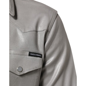 Dolce & Gabbana Gray Coated Cotton Snap Button Logo Men Shirt