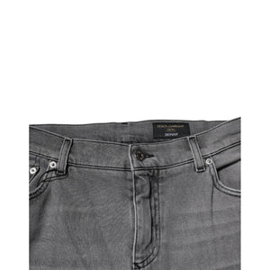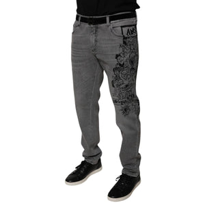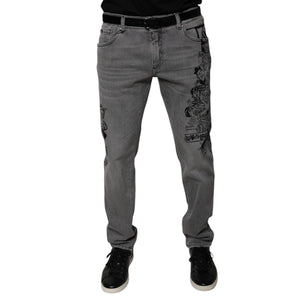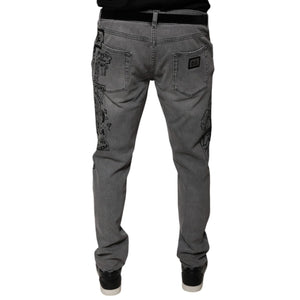Dolce & Gabbana Gray Graphic Print Cotton Skinny Denim Jeans