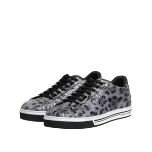 Dolce & Gabbana Gray Leather Leopard Low Top Sneakers Shoes
