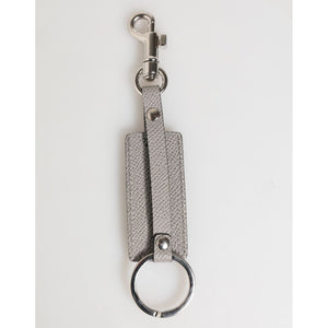 Dolce & Gabbana Gray Leather Logo Metal Ring Keychain Holder Men Keyring