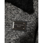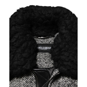 Dolce & Gabbana Gray Wool Herringbone Shearling Collar Bomber Jacket