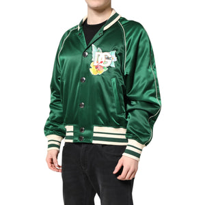 Dolce & Gabbana Green Floral DG Logo Full Zip Bomber Jacket