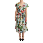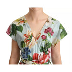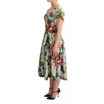 Dolce & Gabbana Green Floral Short Sleeves Cotton V-neck Dress