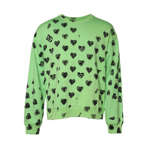 Dolce & Gabbana Green Heart Print Crew Neck Pullover Sweater