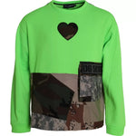 Dolce & Gabbana Green Patchwork Heart Crew Neck Pullover Sweater