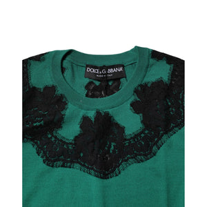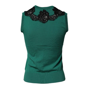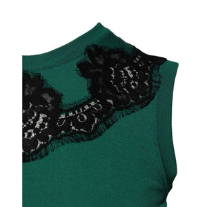 Dolce & Gabbana Green Wool Lace Detail Sleeveless Tank Top
