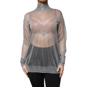 Dolce & Gabbana Grey Mesh Turtleneck Long Sleeve Blouse Top