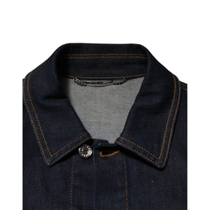 Dolce & Gabbana Indigo Blue Denim Slim Fit Logo Patch Jacket