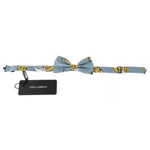 Dolce & Gabbana Light Blue Banana Print Silk Men Neck Bow Tie