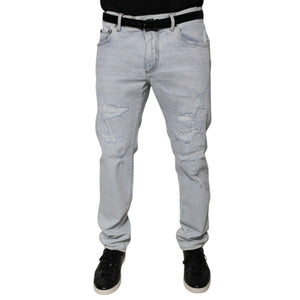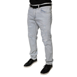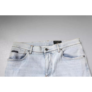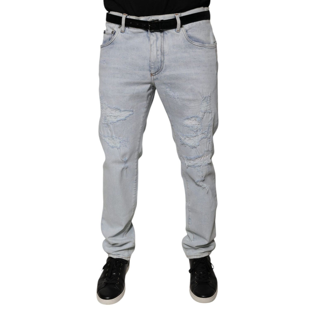 Dolce & Gabbana Light Blue Cotton Tattered Skinny Denim Jeans